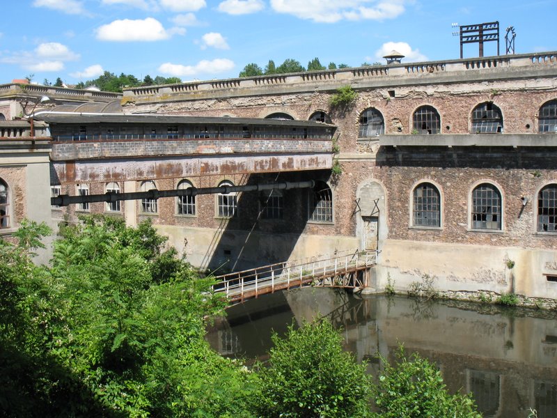 - Centre: bâtiments anciens ayant contenu plusieurs machines, batterie de piles hollandaises, wagonnets, salles de préparation