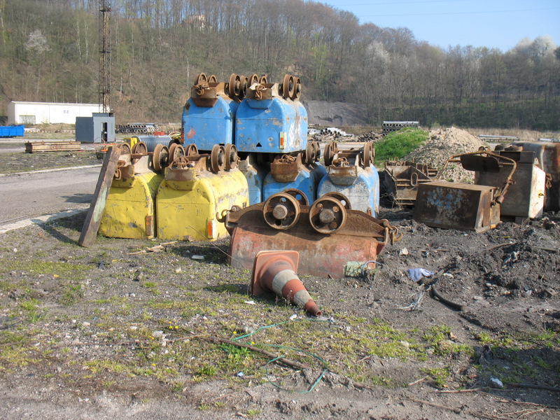 Une heure après, malgré les palabres, nous voilà sur le carreau. On visite rapidement les magasins. Tu veux des essieux moteur ? Un cabestan ? Une palette de flexible hydro ? Je m’en tire finalement avec deux berlines, un chariot sur voie ferrée, quelques élingues et un palan marqué « atelier n°3 jour ».